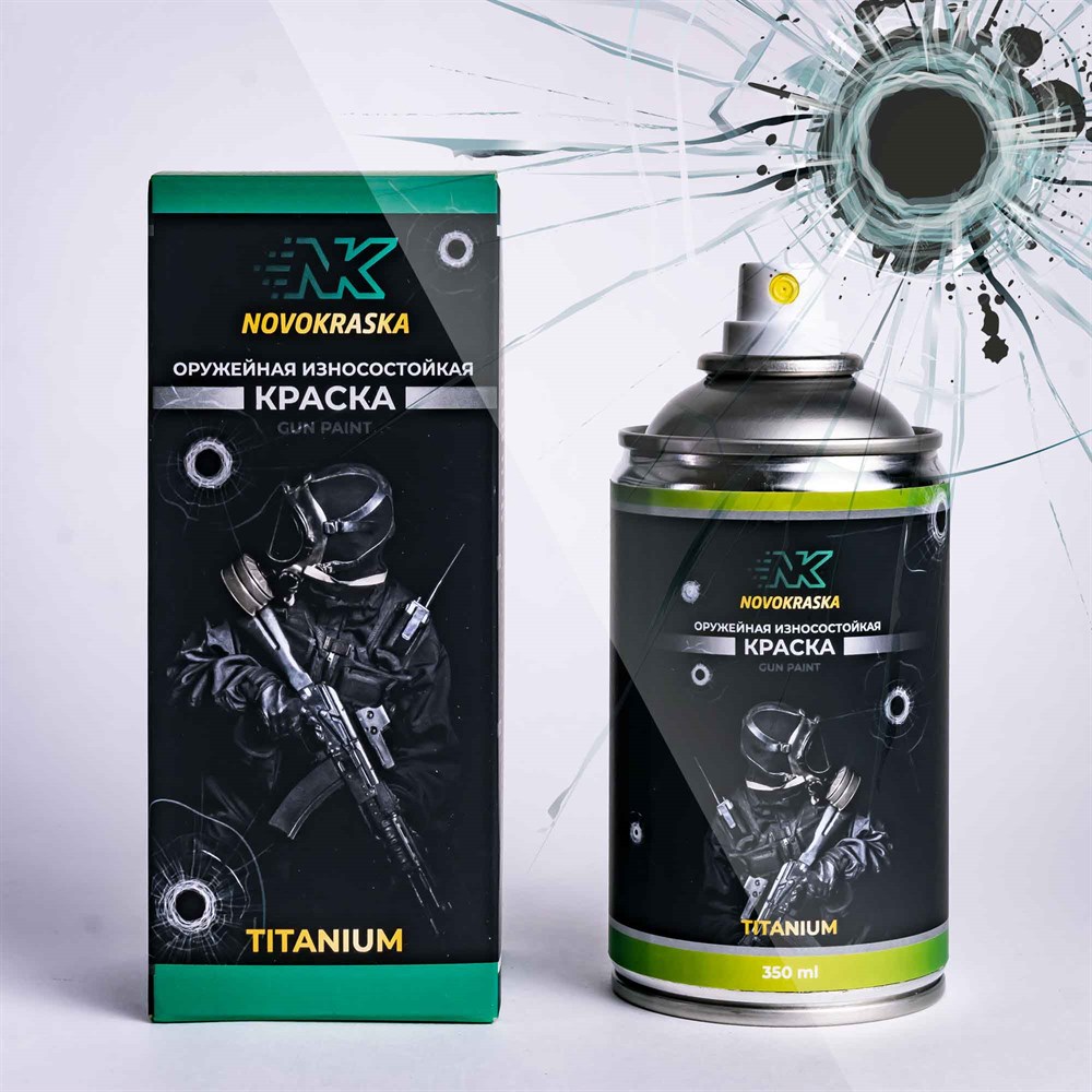 Оружейная камуфляжная краска Titanium NK Novokraska® (Эн Кей Новокраска) в баллоне, применяется для покраски всех типов оружия и предметов экипировки, имеет уникальные свойства, обладает повышенной устойчивостью к механическим нагрузкам, не выгорает при стрельбе из огнестрельного оружия, обладает высокими маскировочными свойствами и малозаметна при наблюдении с использованием оптики и приборов ночного видения. Обладает повышенной антикоррозионной устойчивостью. Подходит для покраски металлических, пластиковых, деревянных изделий и предметов из композитных материалов. Цвет черный графит используется как отдельно, так и при покраске в различные паттерны камуфляжа.
