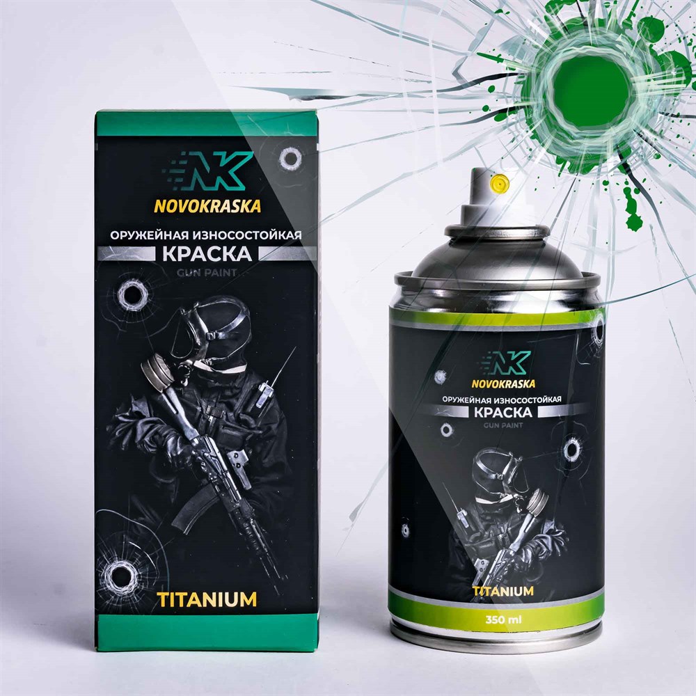 Камуфляжная краска для оружия Титаниум NK Novokraska® (Эн Кей Новокраска) в баллоне, цвет светло-зеленый. Применяется для покраски всех типов оружия и предметов экипировки, испульзуется при покраске в камуфляж A-Tacs FG (Мох). Краска Эн Кей имеет уникальные свойства, обладает повышенной устойчивостью к механическим нагрузкам, не выгорает при стрельбе из огнестрельного оружия, обладает слабоотражающим эффектом и высокими маскировочными свойствами и малозаметна при наблюдении с использованием оптики и приборов ночного видения. Подходит для покраски металлических, пластиковых, деревянных изделий и предметов из композитных материалов.