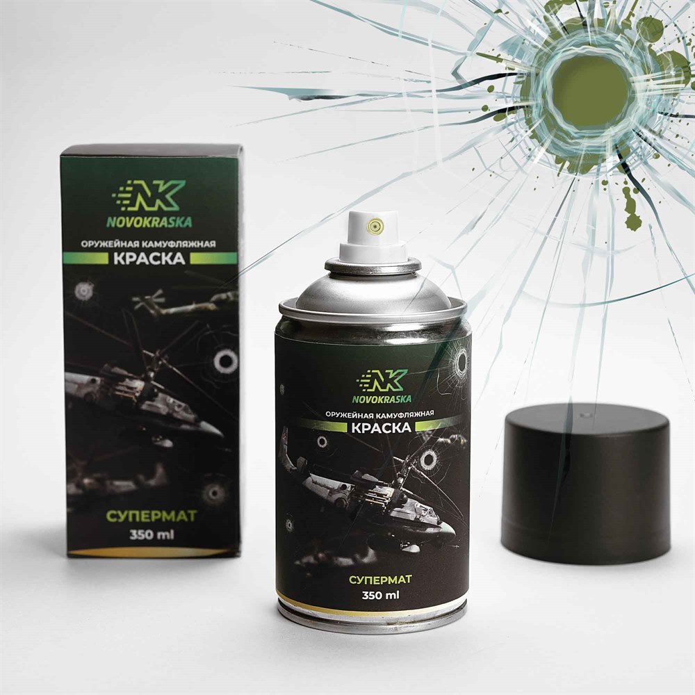 Оружейная камуфляжная краска СУПЕРМАТ NK Novokraska® (Эн Кей Новокраска) в баллоне, применяется для покраски всех типов оружия, прицелов, шлемов и других предметов экипировки. Камуфляжная краска Супермат быстро сохнет, устойчива к высоким температурам, оружейной химии и имеет низкие светоотражающие свойства. Оружейная краска Супермат значительно снижает заметность окрашенных изделий на местности днем и ночью с использованием оптических приборов разведки и без них. Специально подобранные цвета позволяют окрасить оружие в любой маскировочный камуфляж, не выгорают и устойчивы к температурам до 400 °С . Краска обладает высокими антикоррозионными свойствами и эффектом антискольжения. Подходит для покраски металлических, пластиковых, деревянных изделий и предметов из композитных материалов. Цвет светлый хаки используется как отдельно, так и при покраски в камуфляж Мультикам.