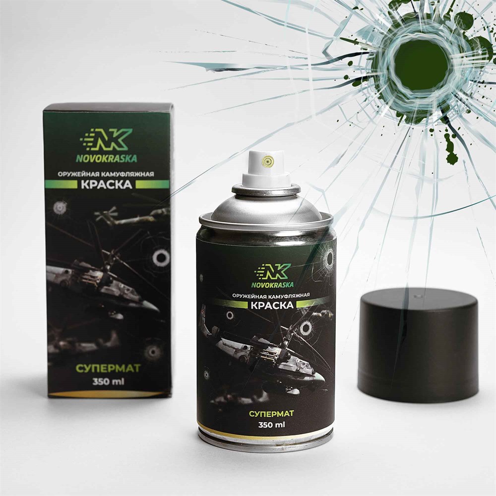 Оружейная камуфляжная краска СУПЕРМАТ NK Novokraska® (Эн Кей Новокраска) в баллоне, применяется для покраски всех типов оружия, прицелов, шлемов и других предметов экипировки. Камуфляжная краска Супермат быстро сохнет, устойчива к высоким температурам, оружейной химии и имеет низкие светоотражающие свойства. Оружейная краска Супермат значительно снижает заметность окрашенных изделий на местности днем и ночью с использованием оптических приборов разведки и без них. Специально подобранные цвета позволяют окрасить оружие в любой маскировочный камуфляж, не выгорают и устойчивы к температурам до 400 °С . Краска обладает высокими антикоррозионными свойствами и эффектом антискольжения. Подходит для покраски металлических, пластиковых, деревянных изделий и предметов из композитных материалов. Цвет зеленый лесной - универсальный оттенок, подходит для камуфляжа в любое время года, используется как отдельно, так и при покраски в камуфляж Мультикам или Мох.